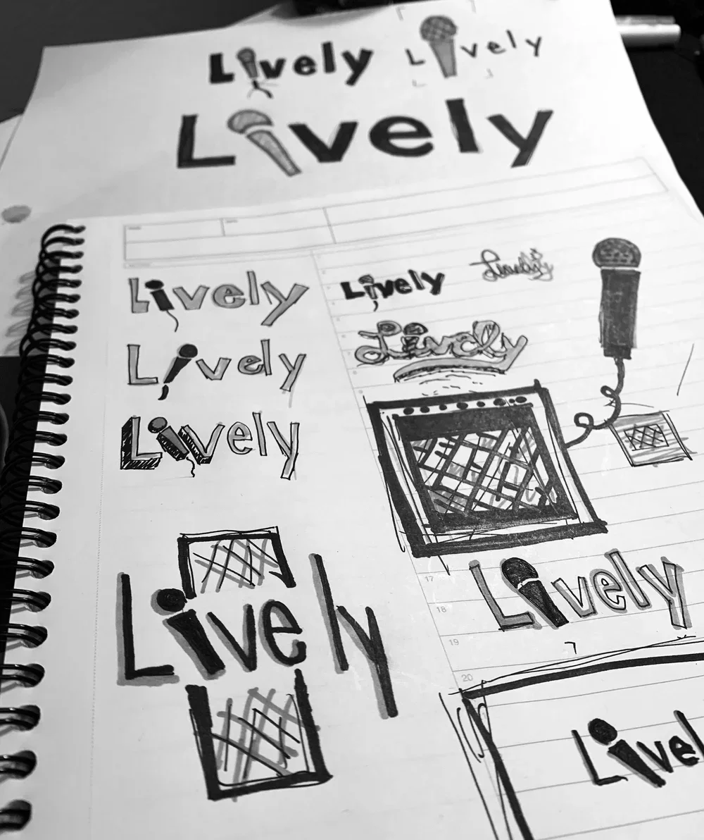 Microphone integration: Experimented with replacing the “i” in Lively with a microphone icon to create an immediate association with performance.