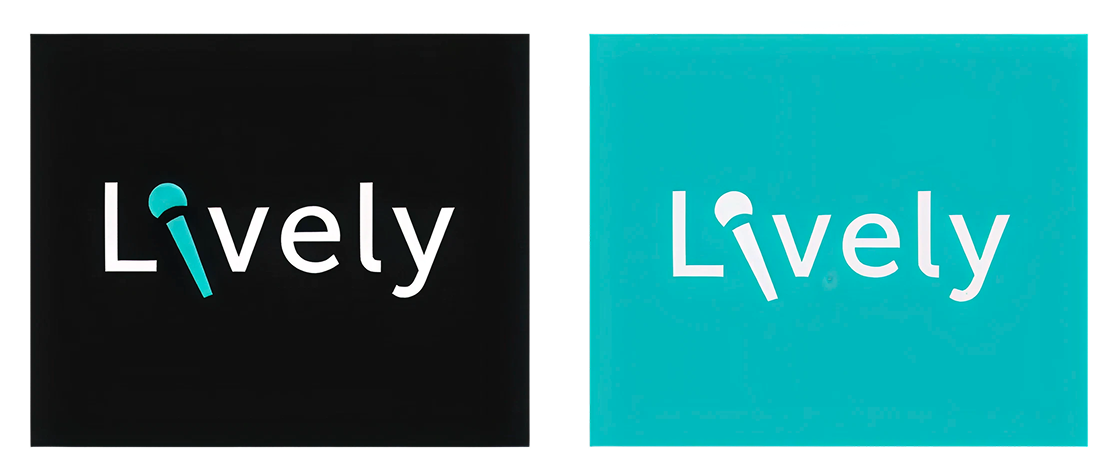 The final Lively logo integrates a stylized turquoise microphone as the “i,” creating an instant connection to live performance while keeping the mark simple, modern, and highly recognizable. The typography is clean and geometric, chosen for its clarity at both small digital sizes and large-scale event signage.